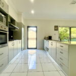 – Modern kitchen with stone bench tops, stainless steel appliances & dishwasher