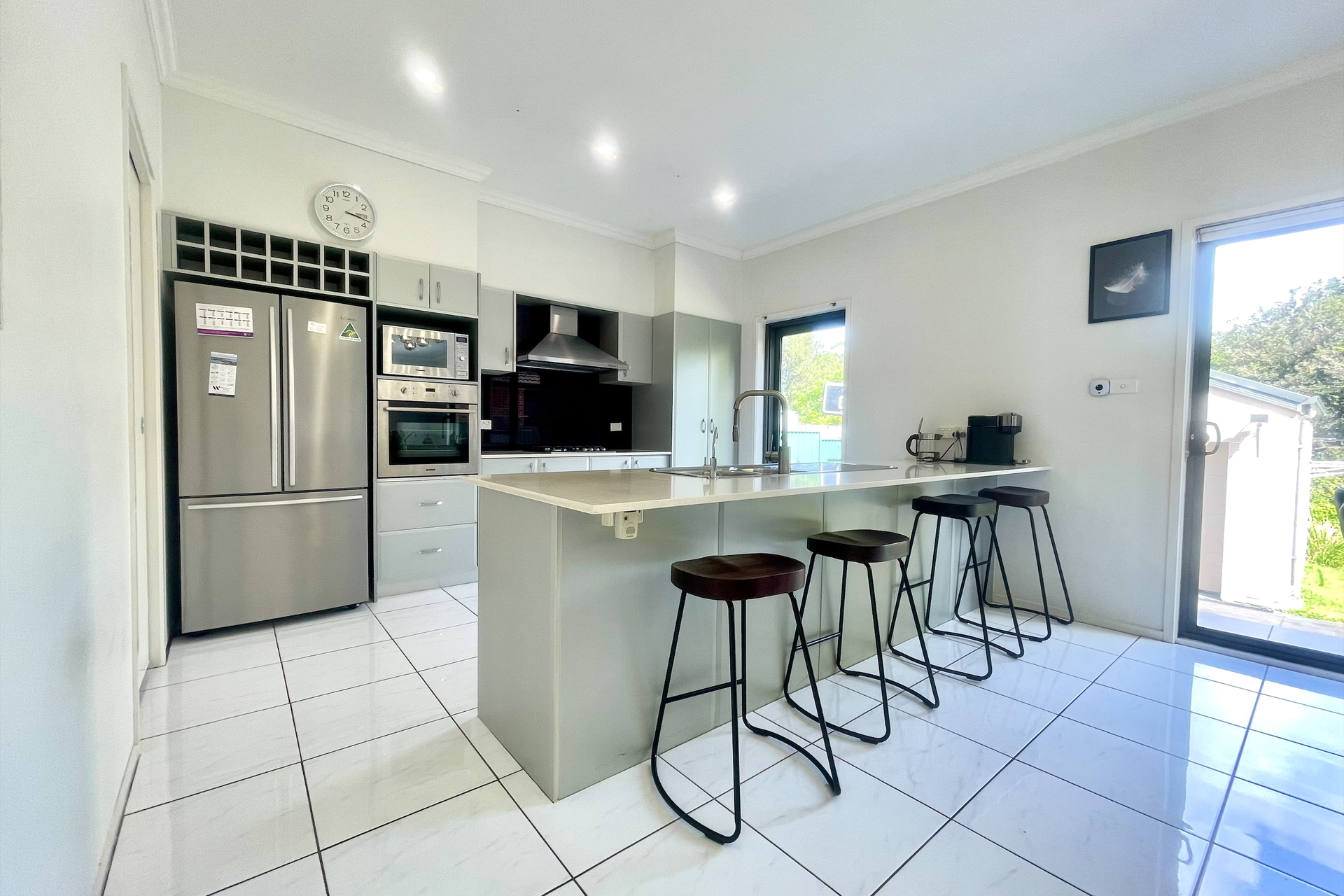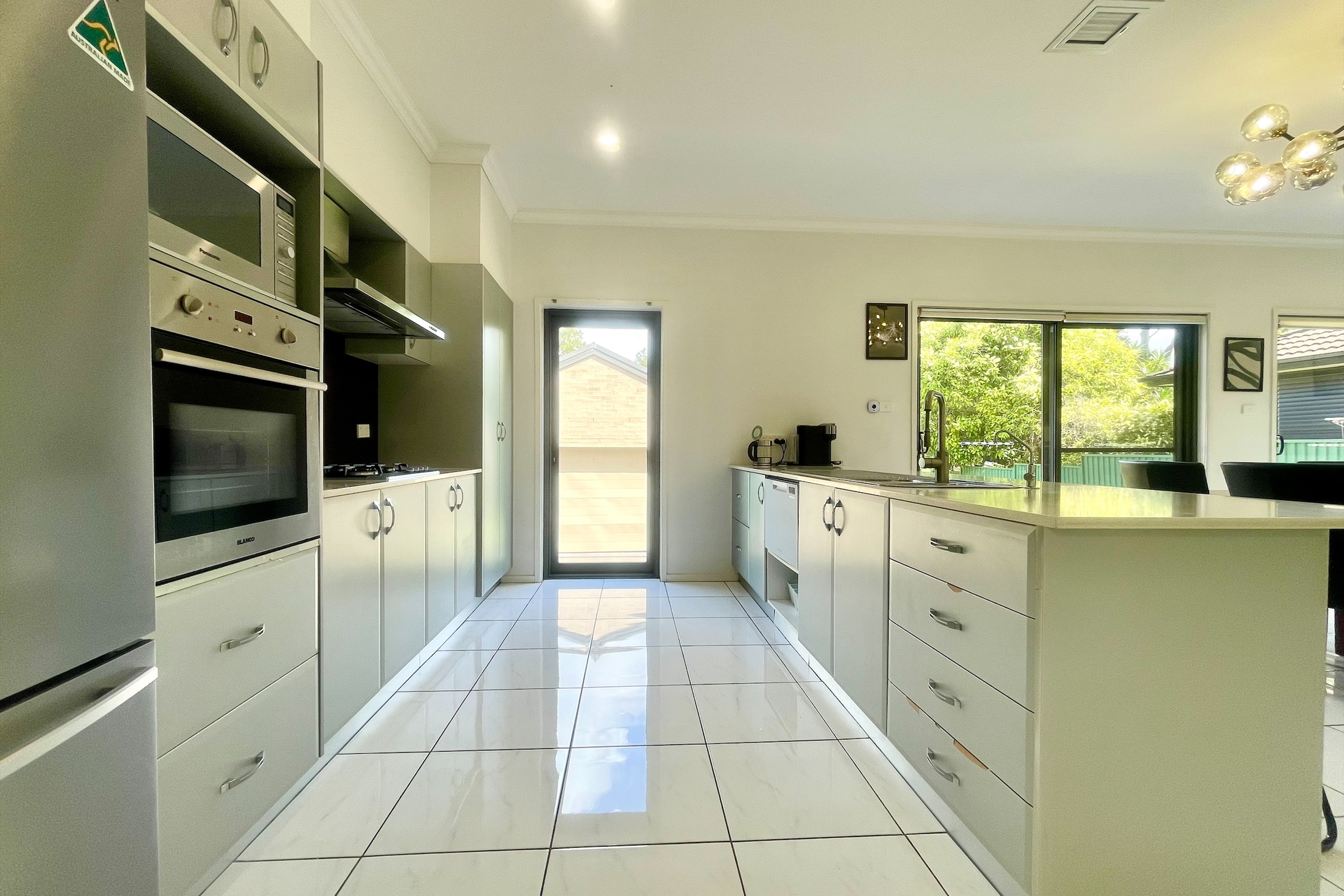 – Modern kitchen with stone bench tops, stainless steel appliances & dishwasher