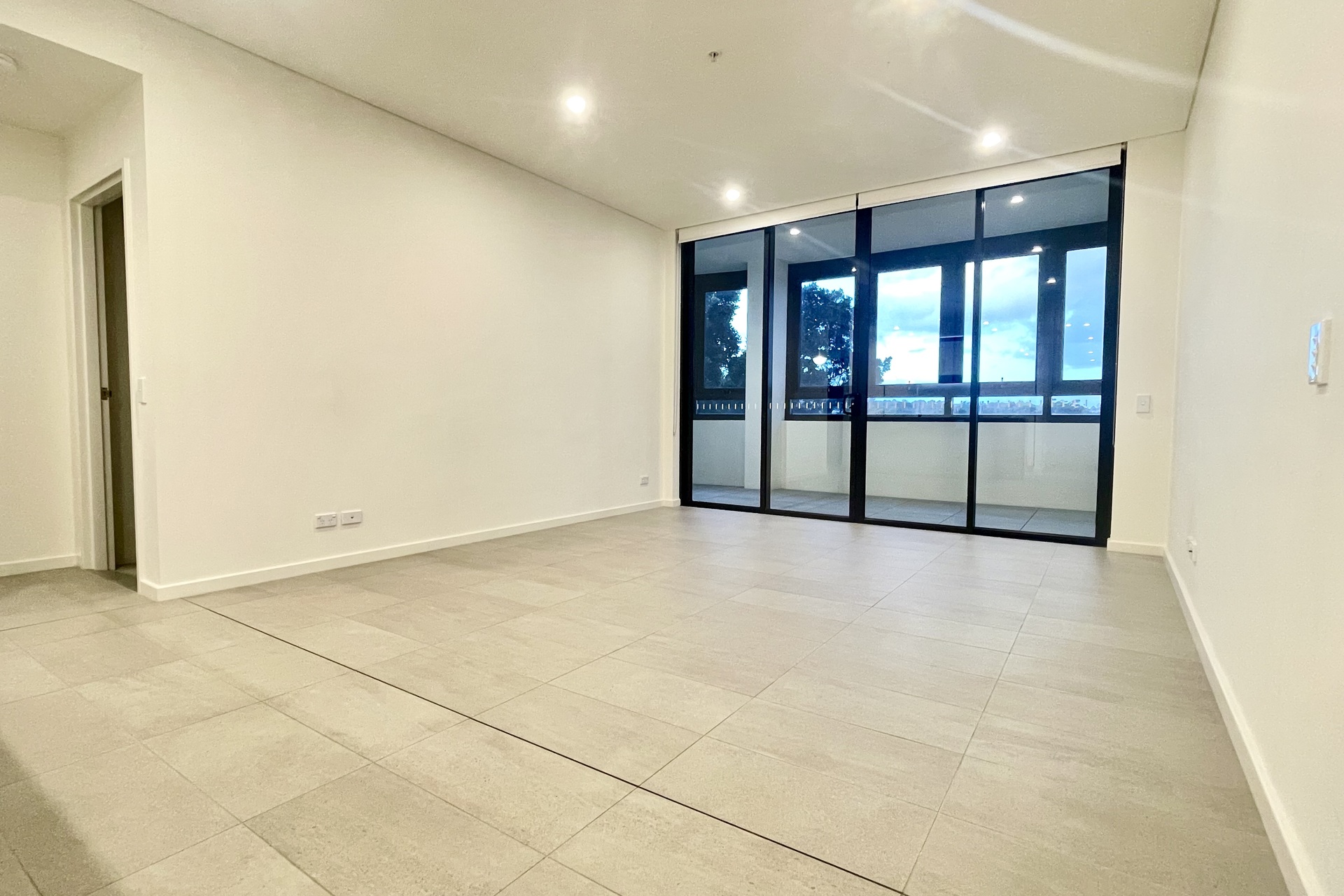 – Spacious living area with LED downlight and tile floor flows to the city view balcony
